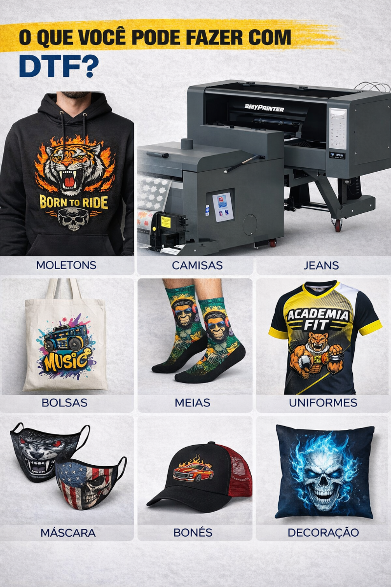 Transforme suas ideias em estampas profissionais com a tecnologia DTF (Direct To Film).